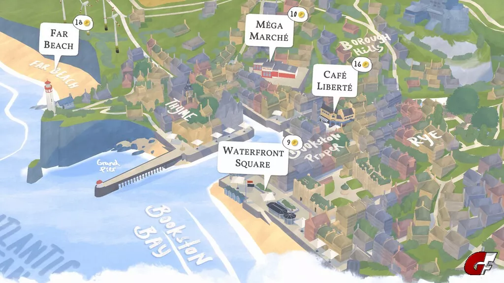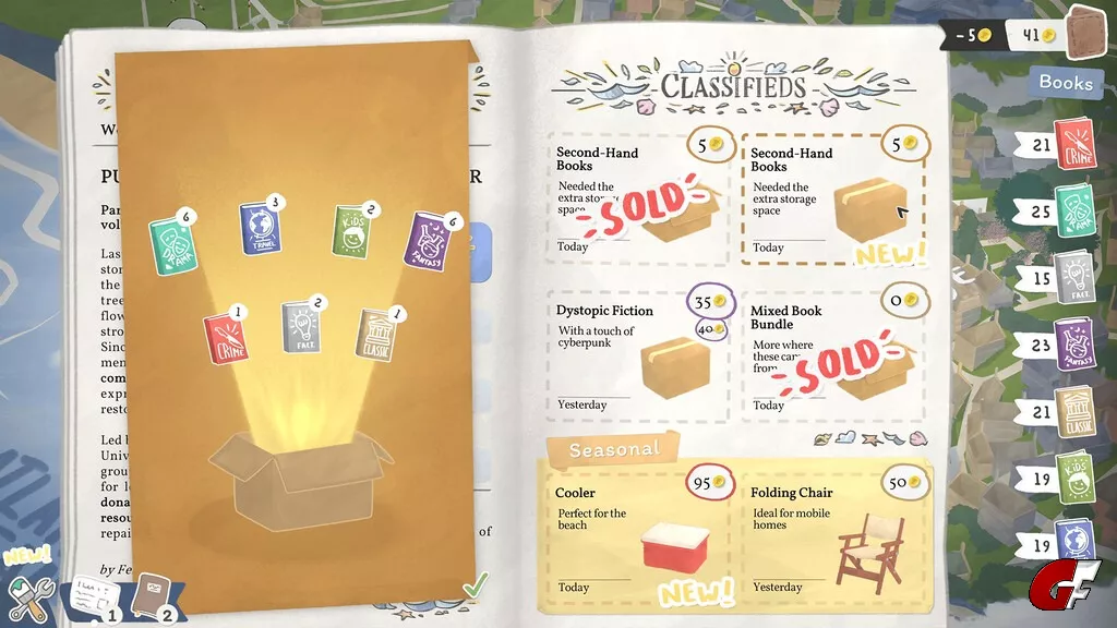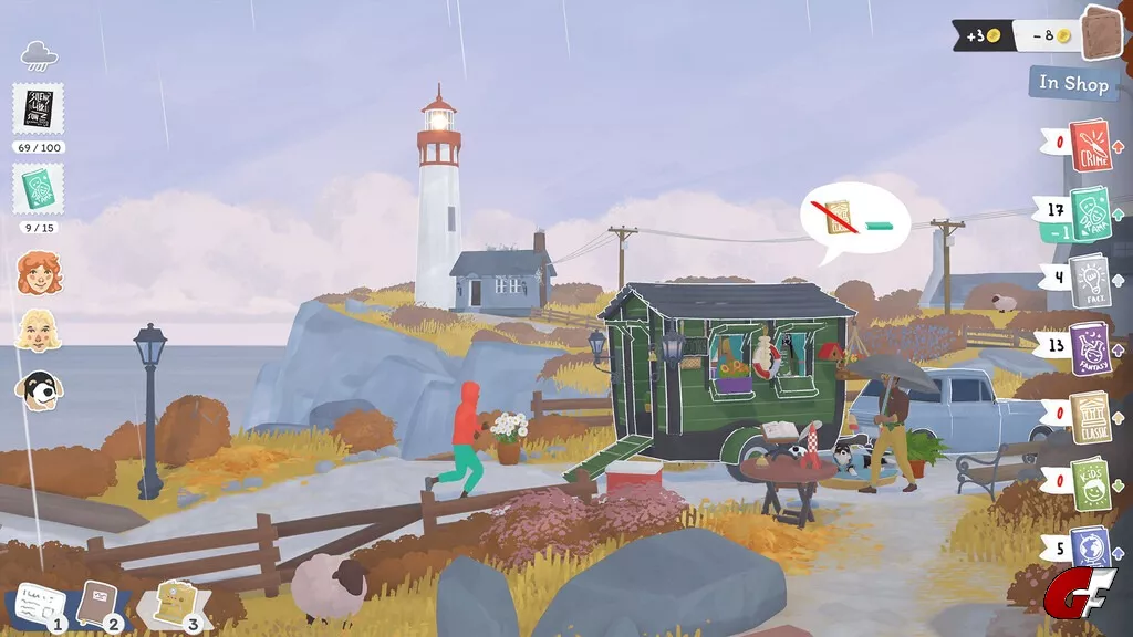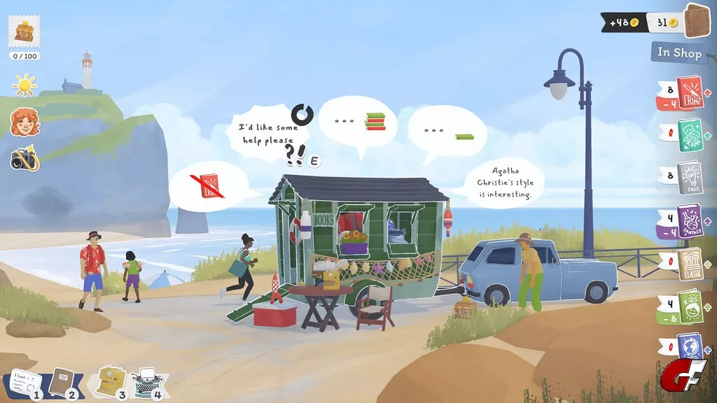 Belade deinen mobilen Anhänger mit verschiedenen Buch-Genres, lass dich an malerischen Orten nieder und lerne die Bewohner*innen der kleinen Küstenstadt kennen.
