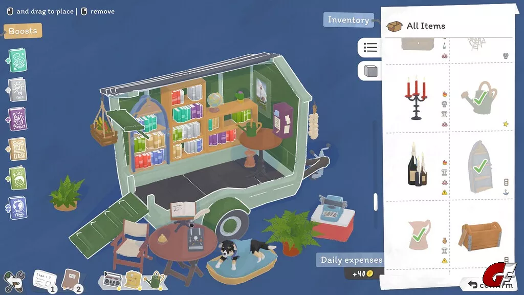 Dekoriere deinen Tiny Bookshop nach Herzenslust mit deinen gesammelten Gegenständen. Magst du es gerne voller Pflanzen? Oder ist ein makaberes, kerzenbeleuchtetes Ambiente mehr dein Stil? Jeder Gegenstand wirkt sich auch auf deine Kundschaft aus und kann neue Spielmechanismen mitbringen.