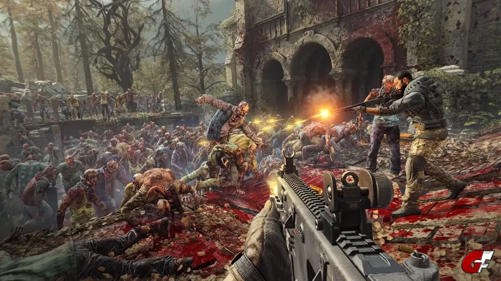 - Einen explosiven Cocktail blutiger FPS-Action mit Endzeitstimmung spielt